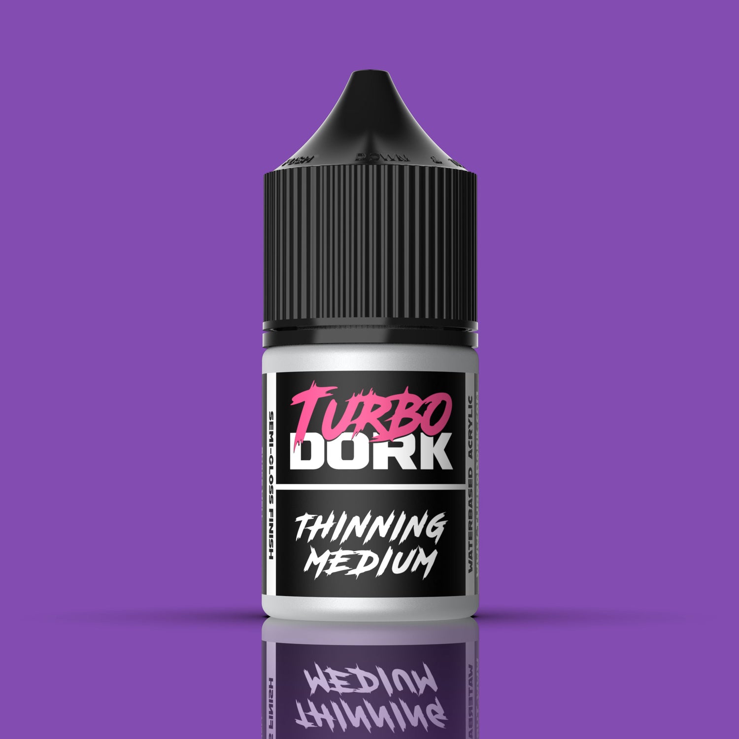 Adding a small amount of this medium to our paints will help them flow easily through your airbrush, and they will leave fewer brush strokes when hand brushed. With Turbo Dork Thinning Medium's superior power, only a few drops of medium are needed to achieve the full "thinning" effect. Meaning you won't be over diluting your paints and losing coverage, as is the case with most other thinners. When used as directed on the side of the bottle, you should be able to reach full coverage with our Metallic and TurboShift paints in 2 to 3 layers.